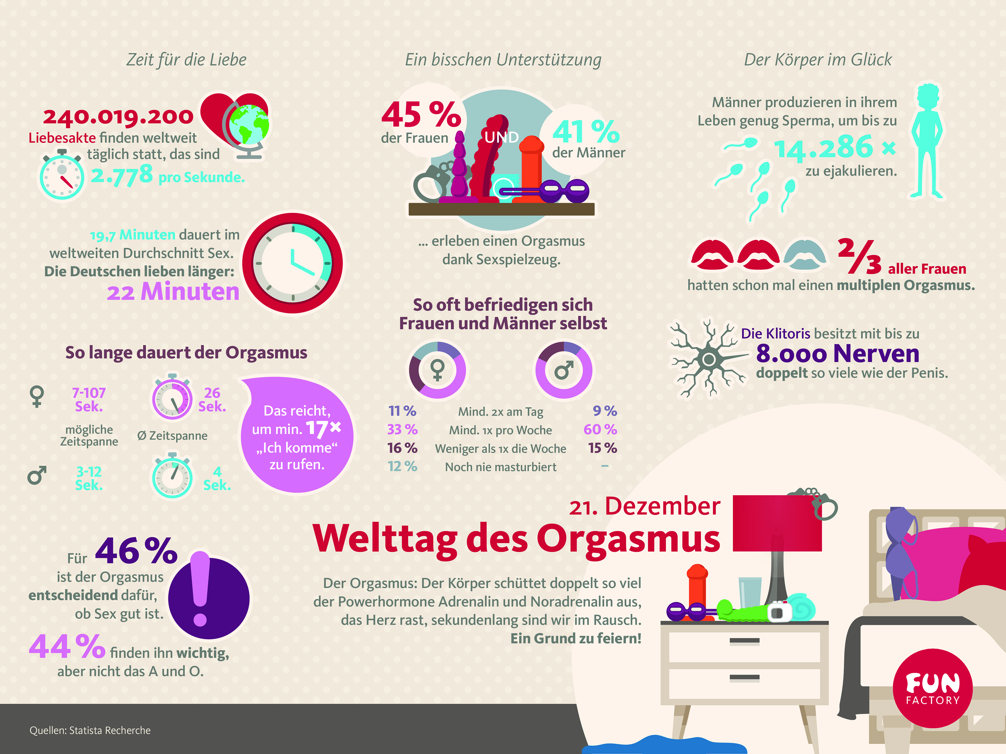 Sexualität kann auf viele verschiedene Möglichkeiten ausgelebt werden. Sperma wird bei der Ejakulation durch die Harnröhre gedrückt und durch die Öffnung der Eichel herausgeschleudert. Ob als leichtes Zittern oder gewaltiges Beben das schönste Gefühl der Welt kündigt sich bei jeder Frau anders an.