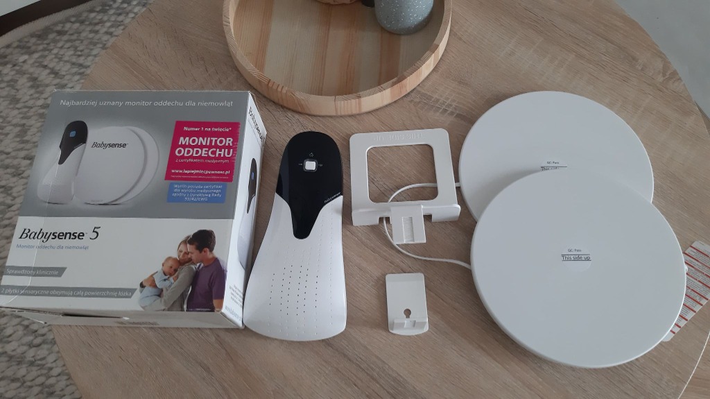 Monitor dechu Babysense II. Rozpakowanie i instalacja potrzebne będą 4 x baterie AA - nie ma w zestawiemonitoruje ruchy oddechowe dziecka przez materac. Posiada Pozytywną Opinię Instytutu Matki i Dziecka.