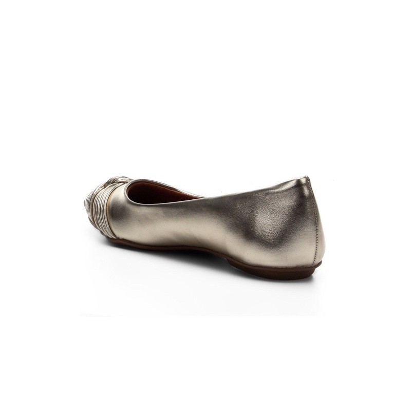 Leather or metallic leather upper in a ballet flat silhouette.
