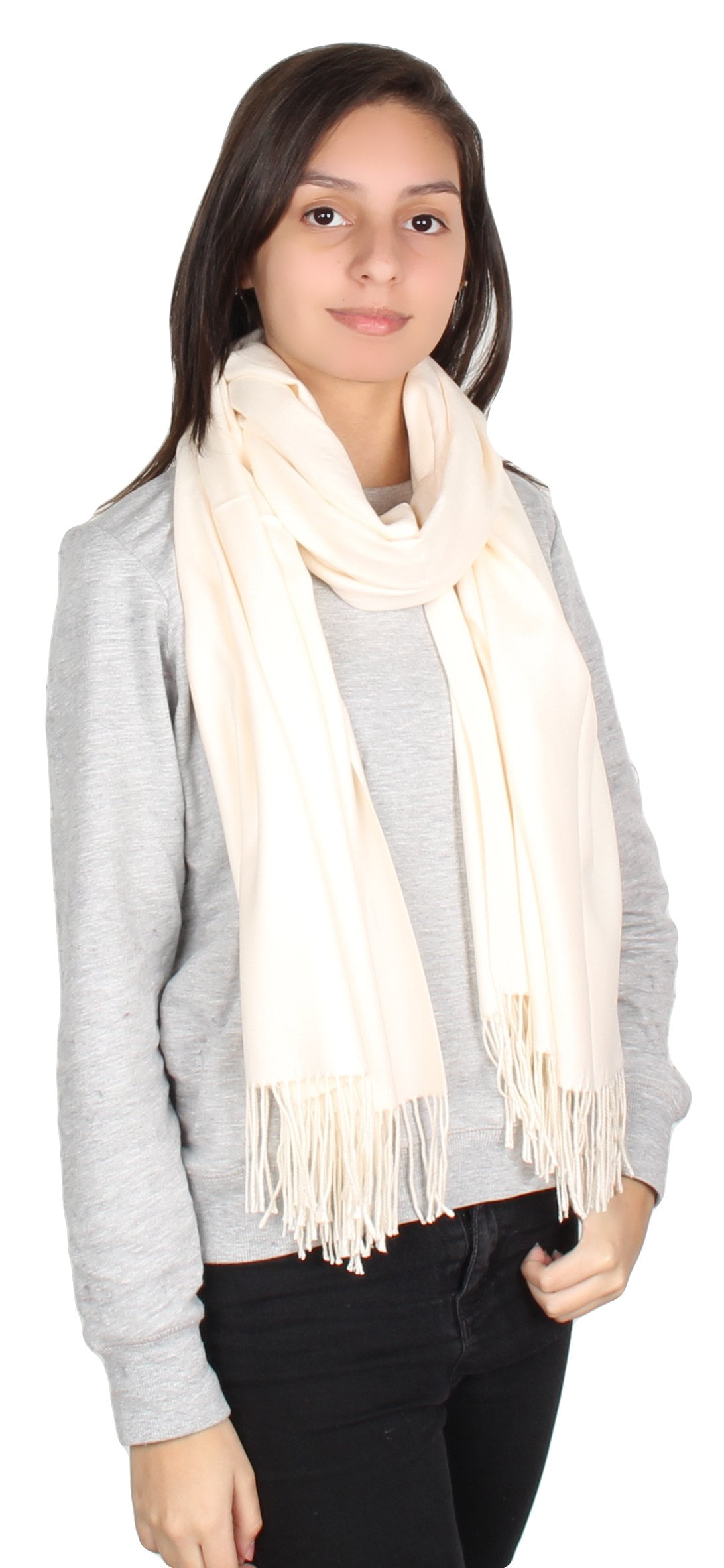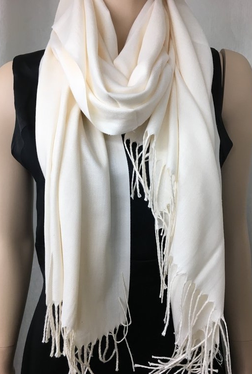 Ivory pashmina wrap. Choose from soft pastel hues or monochrome colours to blend in with your wardrobe and look out for those with fringe detailing for an elevated edge. Its the perfect pashmina to accessorise your outfit if youre lucky enough to be attending a wedding event or formal occasion. Black Grey White Ivory Beige Brown Metallic Purple Blue BlueGreen Green Yellow Orange Coral Pink Red Burgundy.